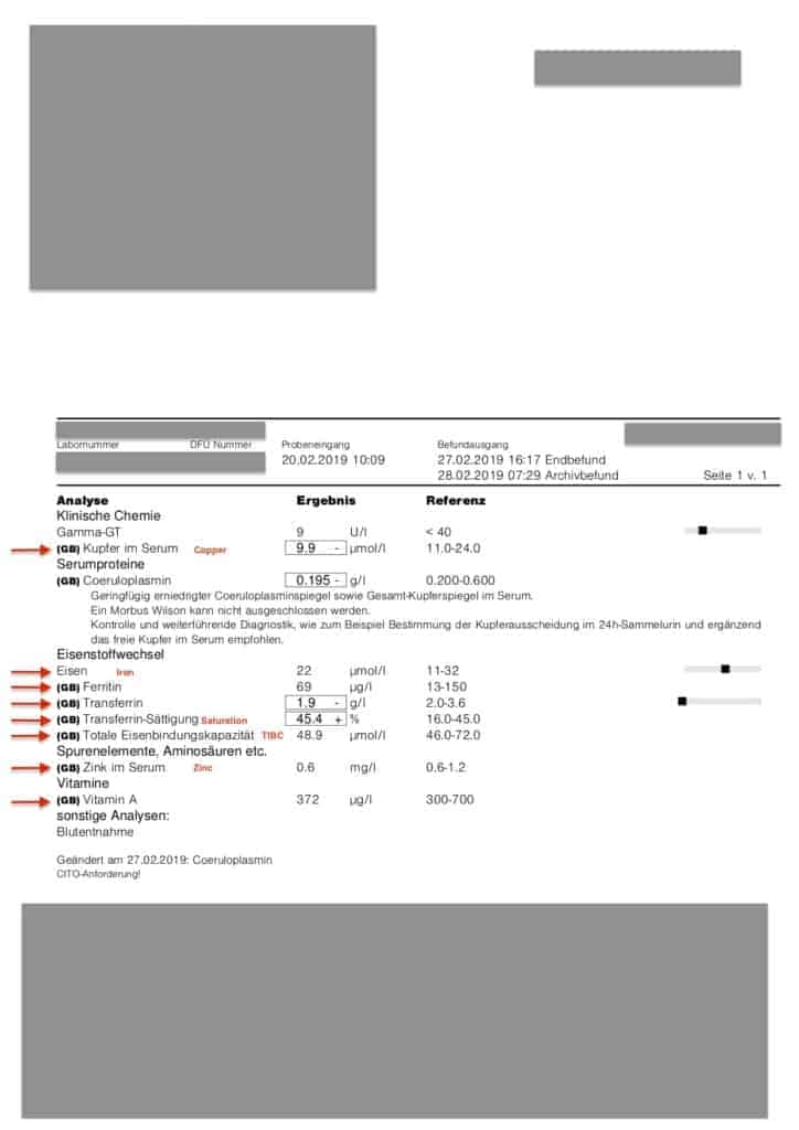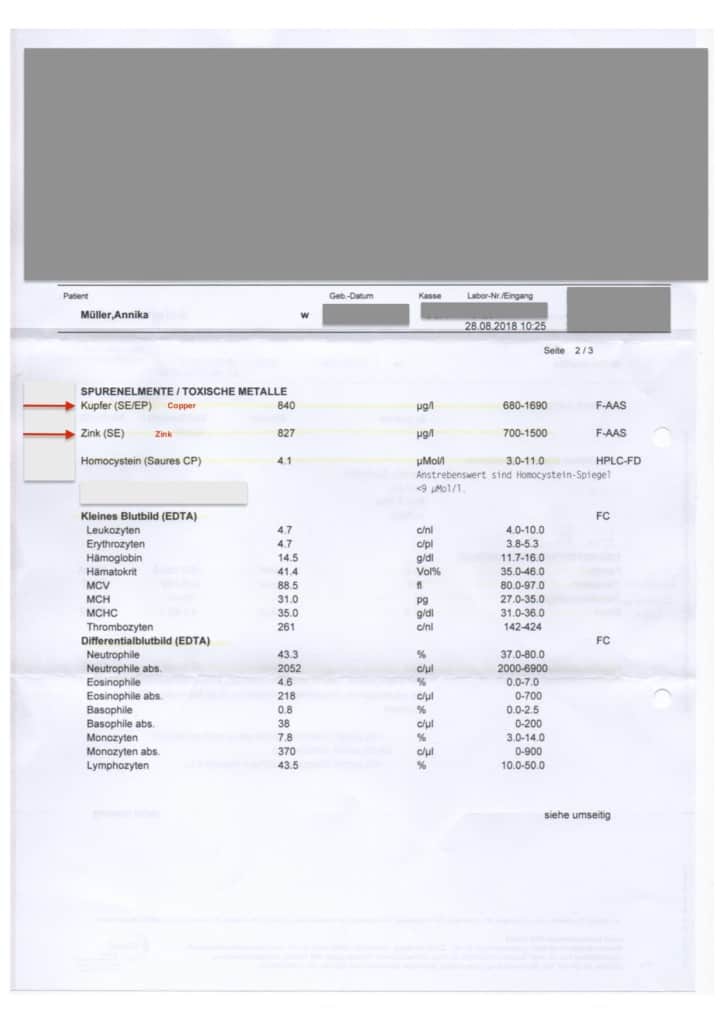 You can see that my blood copper lever was dropping compared to the prior blood work and also zinc went more down.